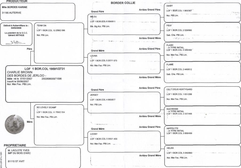 L.O.F c’est une forme de label de l’éleveur, souvent passionné, qui fait son possible pour améliorer la race et qui tentent de réduire au maximum les risques des maladies héréditaires.